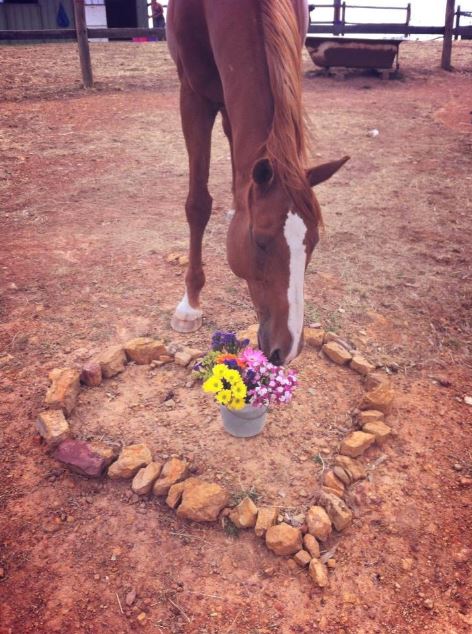 | Above: Ernie paying repects to his beloved bushfire herd member Sanjo Below: My beloved Bluey, passed away suddenly May 2nd 2017 |